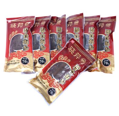 工藝簡介:以檢驗合格的大連鮮活海刺參為原料,經除臟,除沙嘴,煮制、發(fā)制、滅菌等工藝加工而成??诟薪畹烙袕椥裕_袋即食。